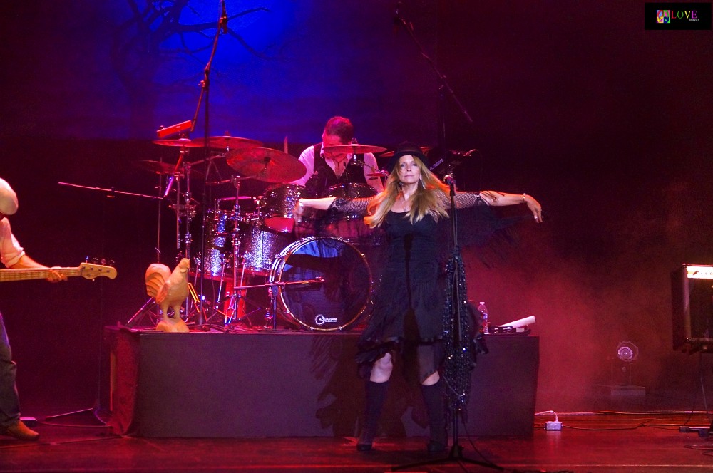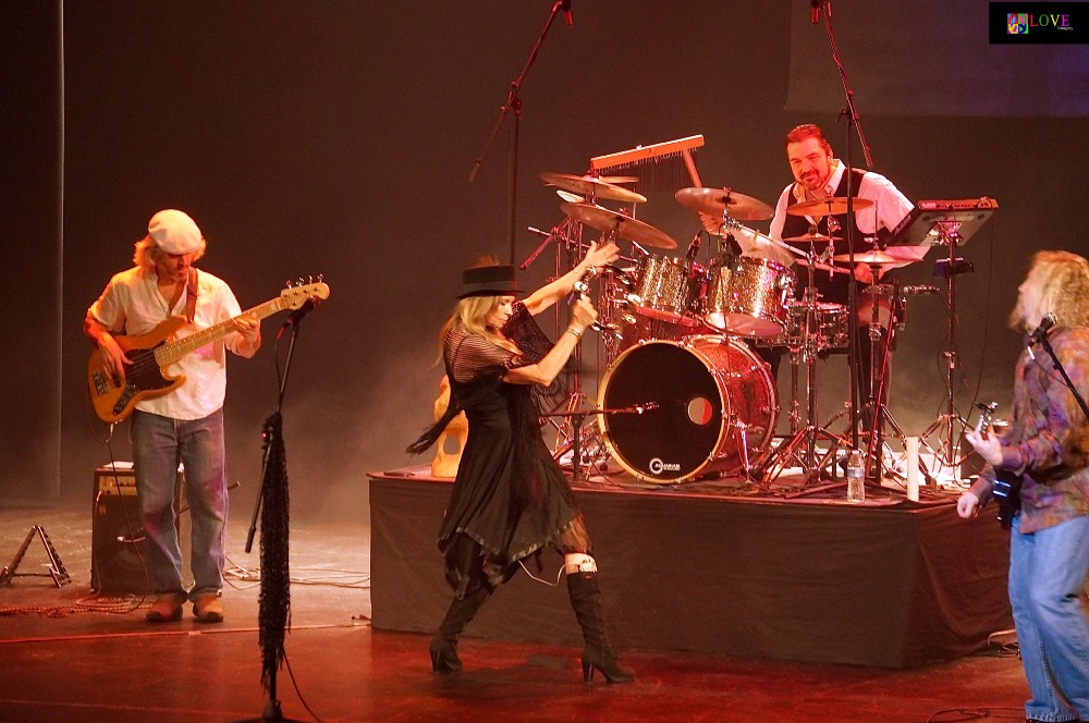 Tom Nelson starts to play the drums, and he's soon followed by Randy Artiglere on bass, Scott MacDonald on guitar, and Kim Williams on keyboards. Soon, rays of light stream across the stage as Kathy Philips - dressed as Stevie Nicks - floats onto the stage.